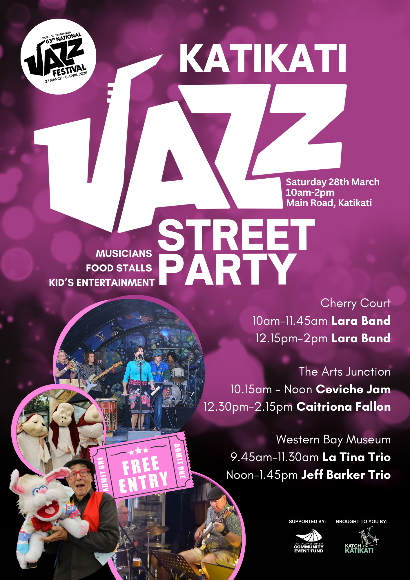 Katikati’s Main Road will come alive once again with the smooth, upbeat sounds of outstanding jazz musicians, filling the streets with rhythm and energy all day long.